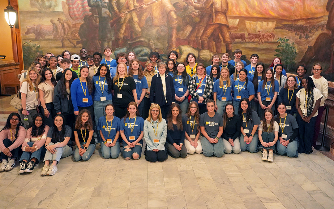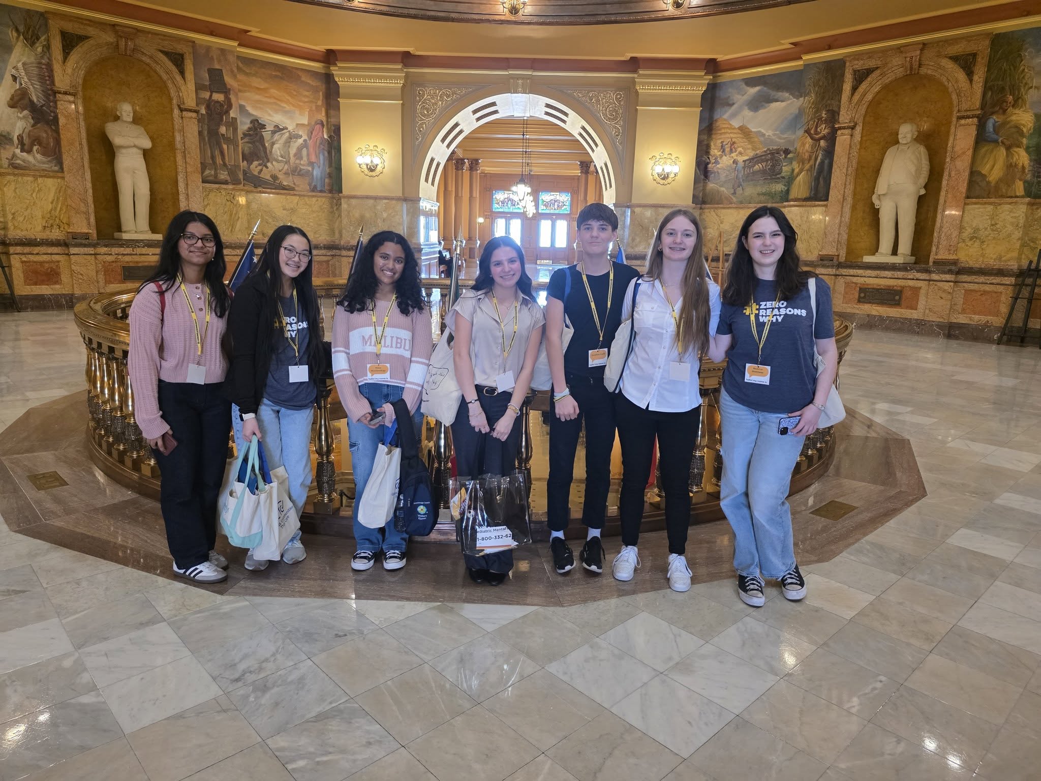 On February 26, 2026, 100 teen advocates from Zero Reasons Why Campaign implementations across Kansas gathered at the State Capitol for Prevention Advocacy Day. This year was our biggest turnout yet, with Zero Reasons Why teens and adult volunteers accounting for nearly half of the total event attendees.